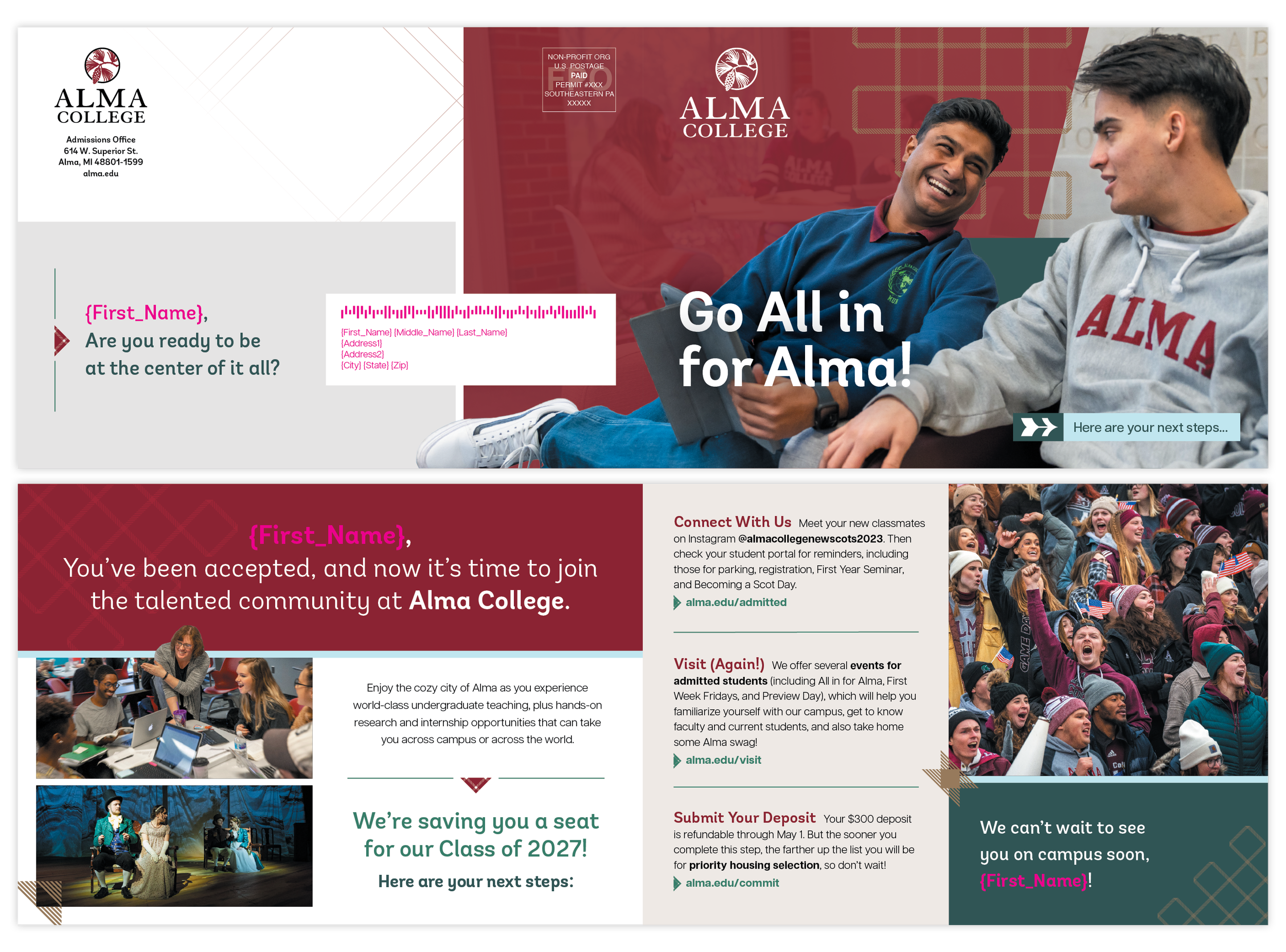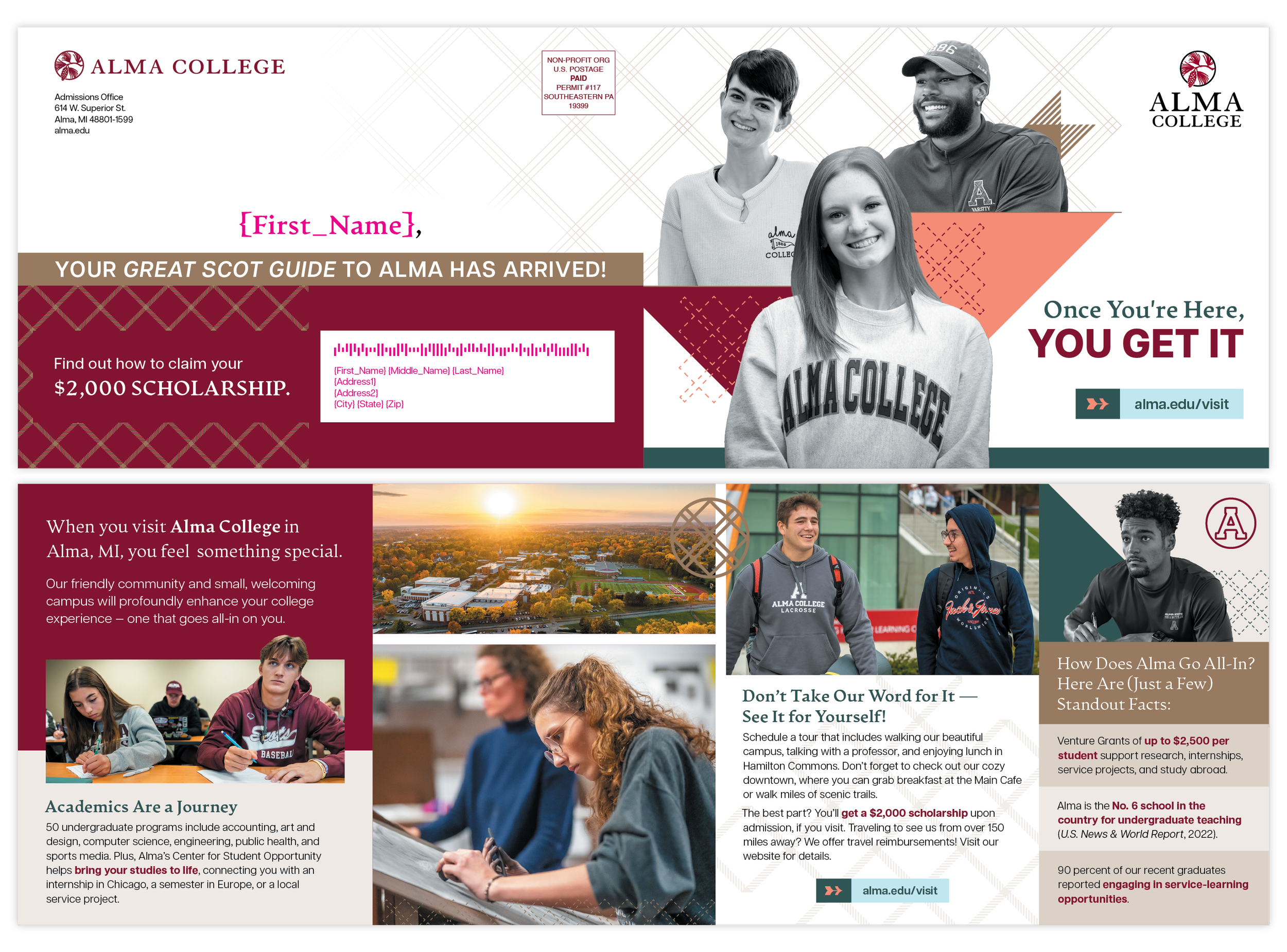Fulfillment Piece: Created a follow-up fulfillment print piece to sustain interest, reinforcing key messaging and encouraging continued consideration of Alma College.
